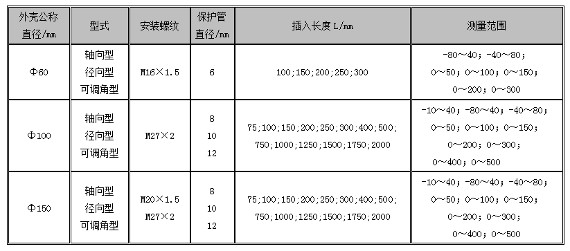 直型(徑向型):指針盤與保護(hù)管成平行方向的連接。