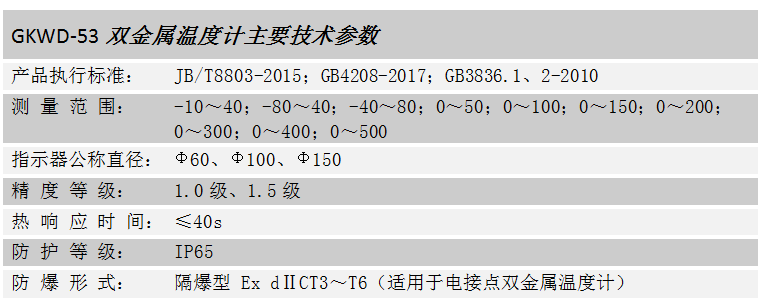 GKWD-53雙金屬溫度計(jì)是由兩種不同膨脹系數(shù),彼此牢固結(jié)合的金屬作為感溫元件的接觸式直讀溫度儀表,適合測量中、低溫,現(xiàn)已成為溫度就地指示儀表的理想選擇。